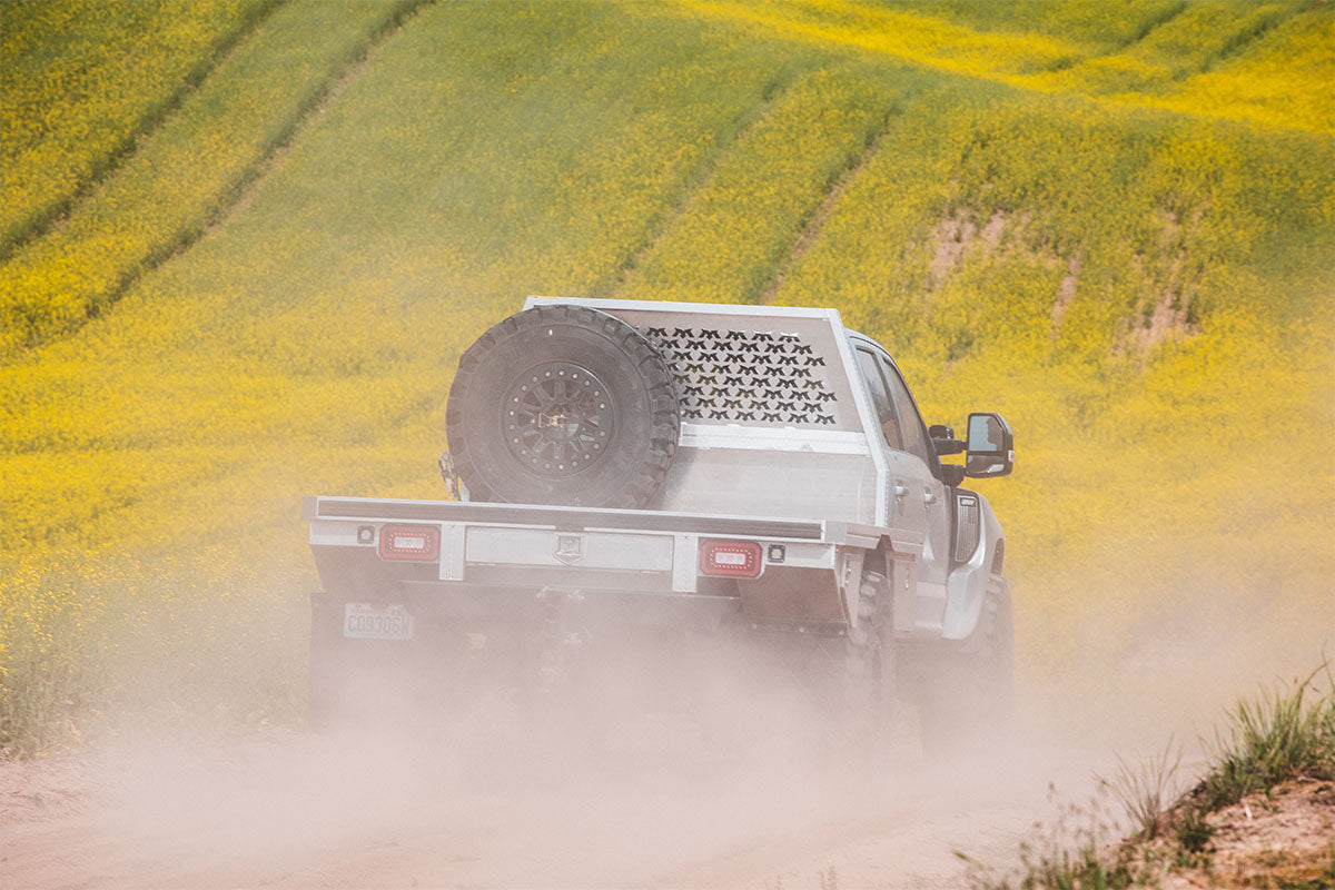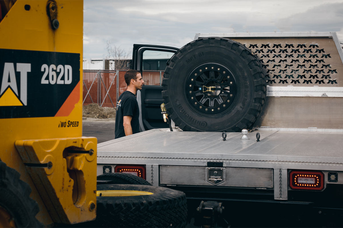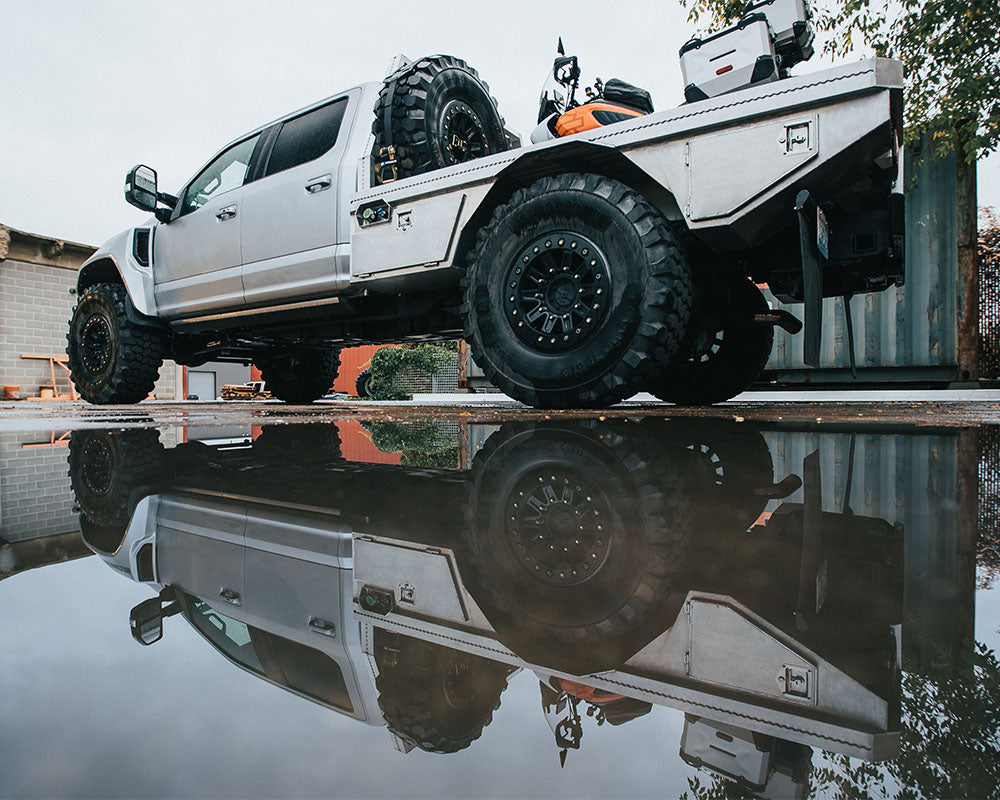 Let's face it - these days, trucks get made to be well-rounded. While that may work for most, we were looking for something a little stronger, dependable, and versatile to be our "do it all" truck. Meet Atlas: our ultra-utilitarian F-450. We wanted to haul better - so we got rid of the bed and built a custom flatbed. With a lifetime spent in the dirt, we knew we needed better suspension. Larger tires, wheels, and lighting were a must to drive down the paths less traveled.