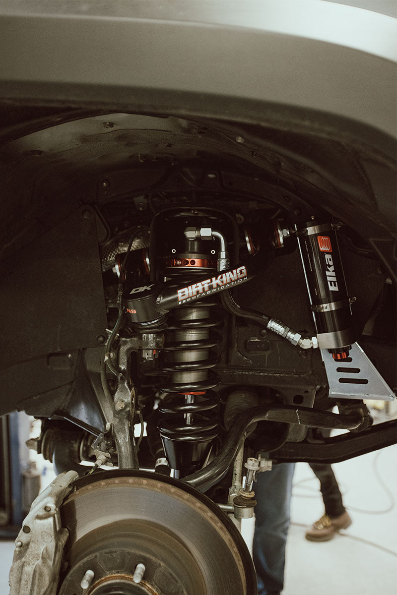 In phase 1, we completed the heavy hitter items – Suspension, wheels, tires, and drivetrain. Choosing the suspension upgrade is always critical on the outcome and direction of the build. That said, we landed on an upgraded coilover suspension system from Elka Suspension. This gave us the boost we needed in dampening department for future accessories we plan to add, and the ride height we need for the tires. Knowing the truck would see equal amounts of dirt and road, we chose a Nitto Ridge Grappler tire wrapped around a Method Race Wheels grip lock wheel, which we like to think is having your cake and eating it too kind of package.