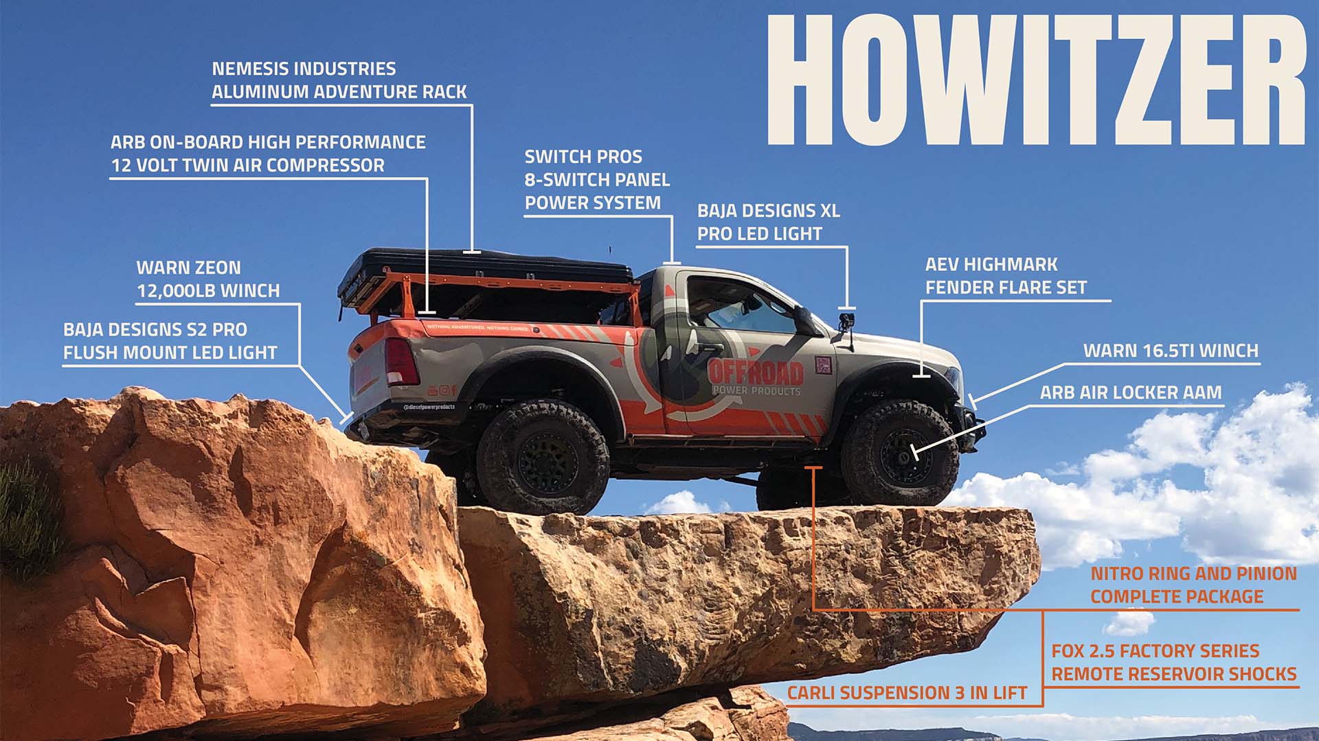 What is the first thing you do when you buy a new truck? We cut ours in half. Unfortunately, when it comes to single cab trucks you are stuck with a long box. Knowing we wanted to build the ultimate full size off-road truck, Howitzer went under the knife to be transformed into a single cab short box. If you follow us on social media chances are you have seen this truck in several different forms. Currently we have a custom 3-link up front and coil overs in the rear. Not only does this truck ride like a dream on the road but it completely dominates on the trail. Beyond Howitzer’s impeccable off-road capabilities it has many comforts when it comes to overlanding. Our Tepui rooftop tent sits on an all-aluminum Nemesis Rack and we added LED lights around the entire vehicle. Whether you are bouncing around on rocks in Moab or setting up camp in the mountains, Howitzer is the truck for the job.