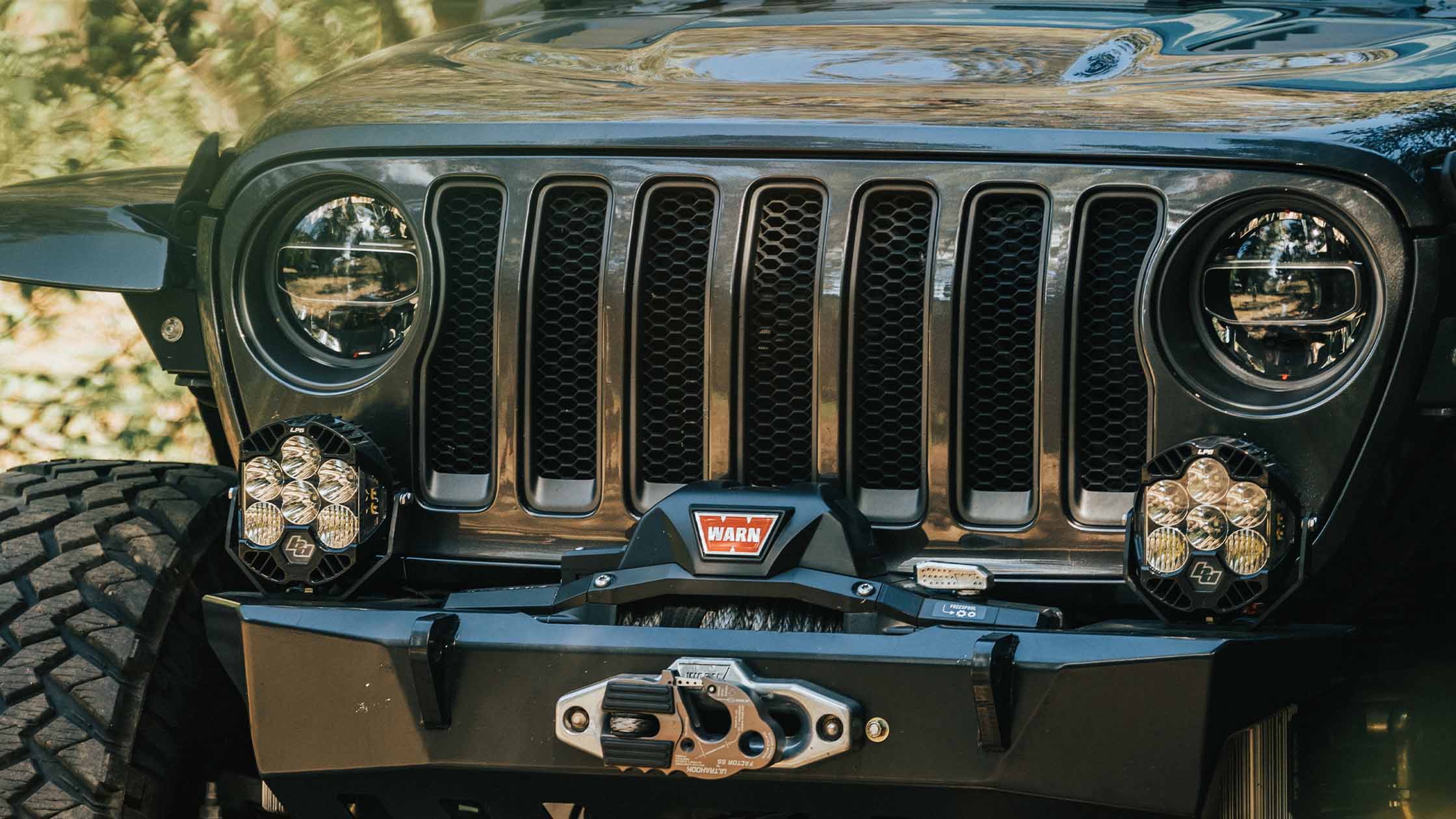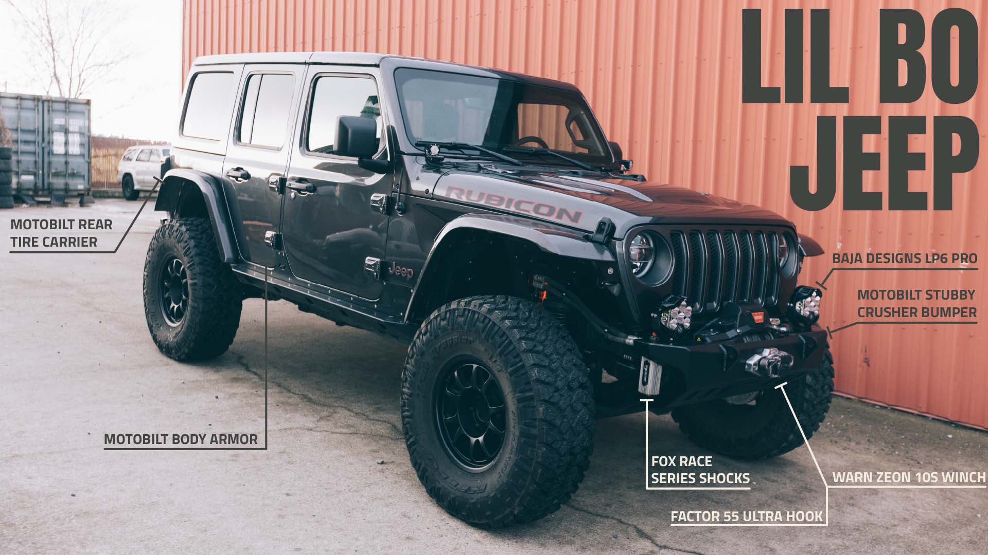 We wanted Bo to prepared out on the trail, so we outfitted this rig with a Motobilt Stubby Crusher Bumper, Warn Zeon 10S Winch, and Factor 55 Ultrahook. Of course we added some Baja Design LP6's & Squadron Pros to light the way through Bo's next adventure.