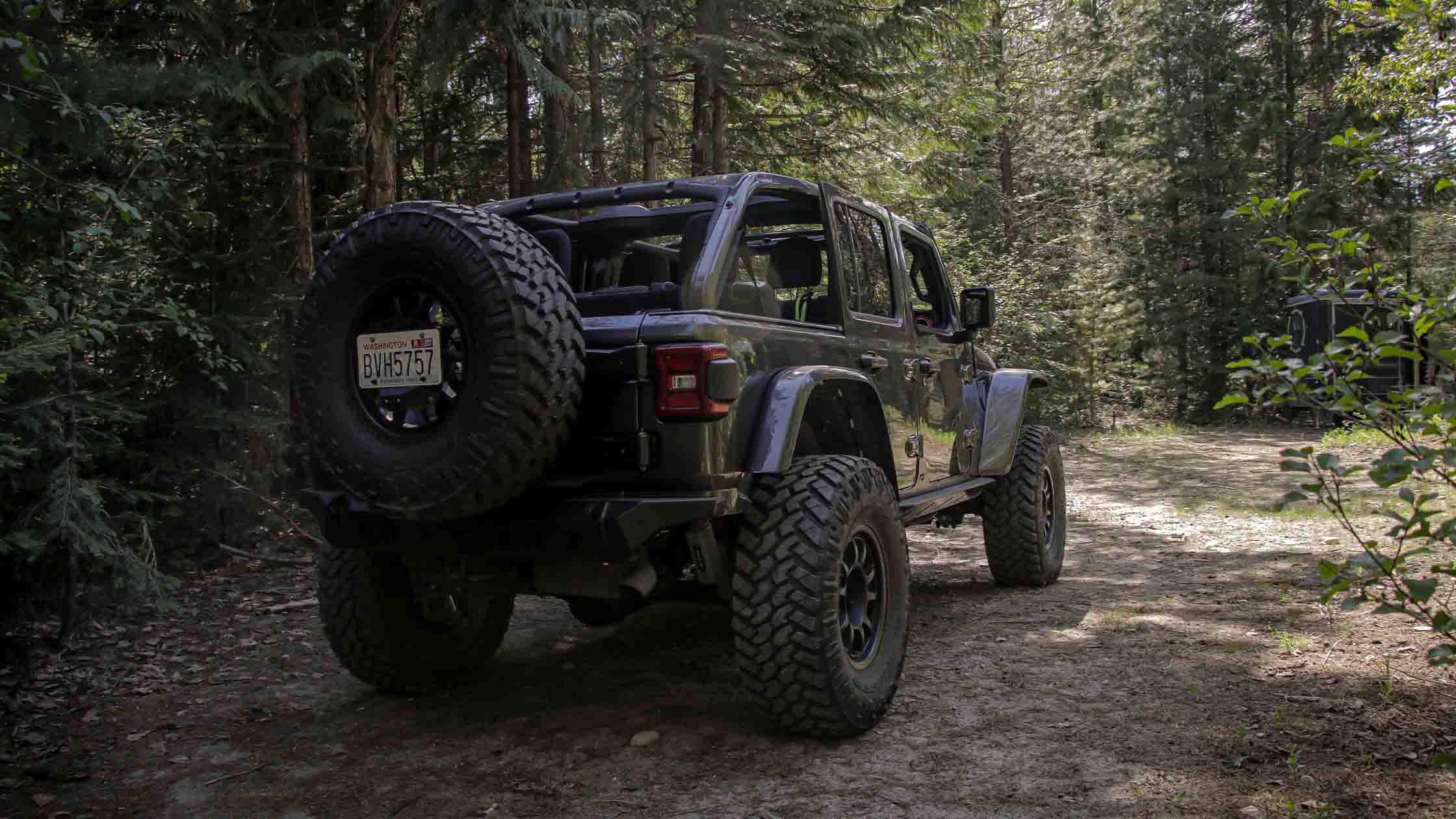 Lil Bo Jeep rolls around on 17inch Method 702's wrapped in 37" Nitto Trail Grapplers. When paired with the 3.5in Rock Krawler Lift Kit and Fox Race series shocks the JL cruises comfortably down the freeway while still being ready to head out on an off road adventure with his Dad.