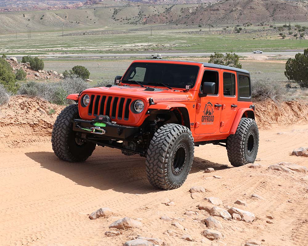 Right out of the gate we were blown away with how well the JL handled over its predecessor the JK. After Cooper gave Punk’n a good stock shakedown it was time to get to work. One thing that is impressive about the JL is we were able to fit 40-inch tires with just a 2.5-inch lift kit from Teraflex. It’s no secret that use and abuse our vehicles which is why we threw as much strength at the axles as we could. We eliminated the FAD (front axle disconnect) with a set of RCV axle shafts and added Dana Spicer 5.38 gears. Protecting the underside of Punk'n is Artec Industries bellypan. We always like to go prepared which is why this JL is equipped with a Warn winch.