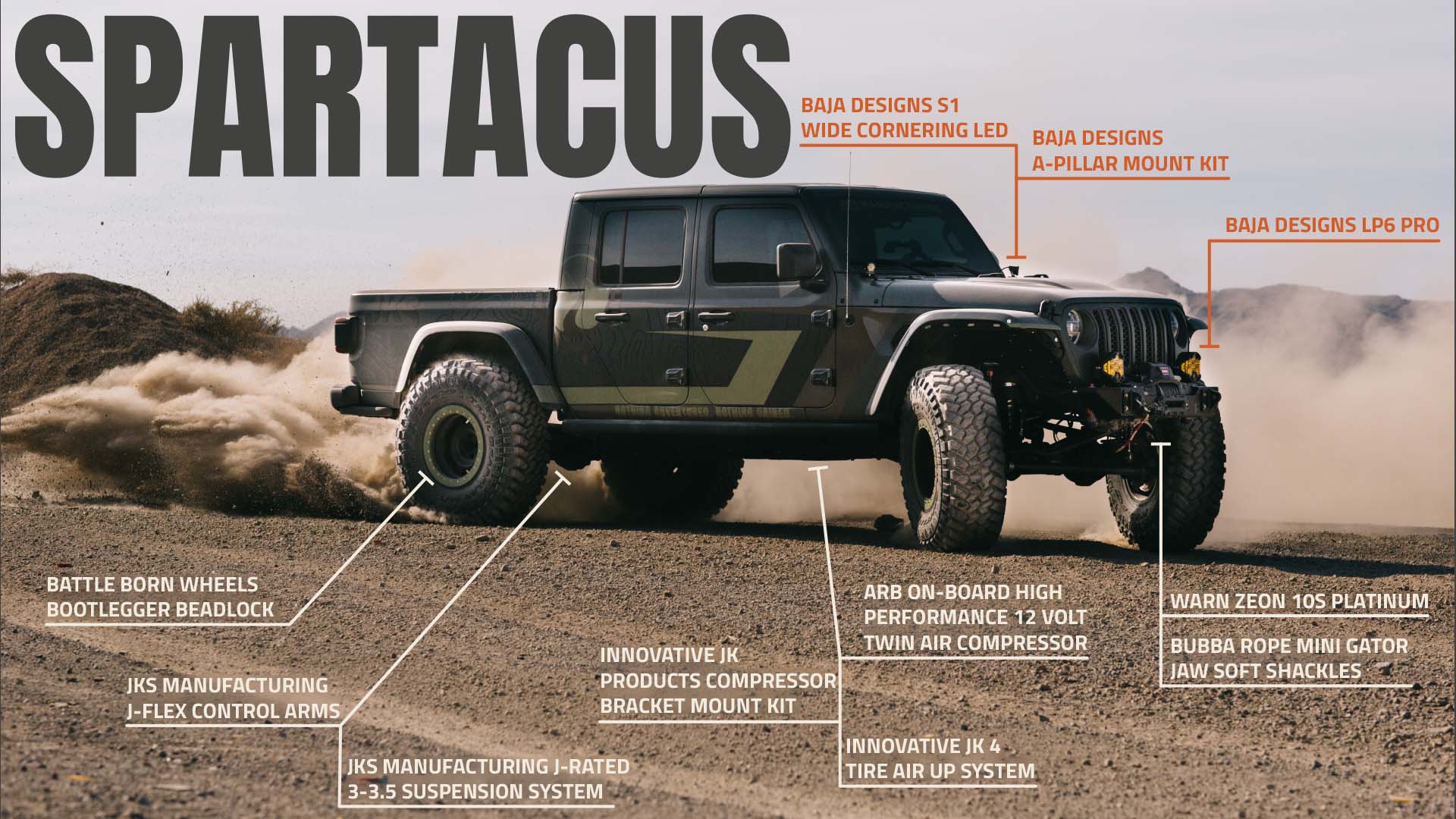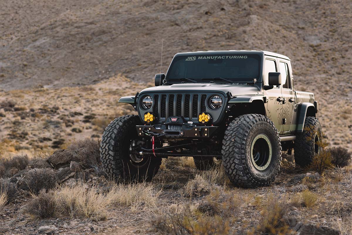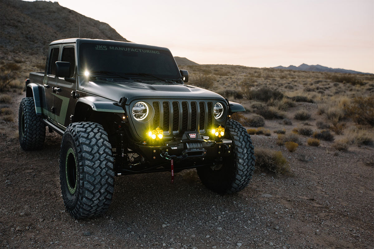 This suspension paired with Fox 2.5-inch aluminum body shocks with DSC (Dual Speed Compression) adjusters allows for an incredibly comfortable ride both on and off-road. This Gladiator build features JKS suspension that allowed us to clear a set of 40-inch Nitto Trail Grapplers which are paired seamlessly with a set of Battle Born Bootlegger Beadlock wheels. Knowing that the Gladiator will be spending a lot of time in the dirt we installed a Warn Zeon 10-S winch to get us out of any situation that horsepower can't.