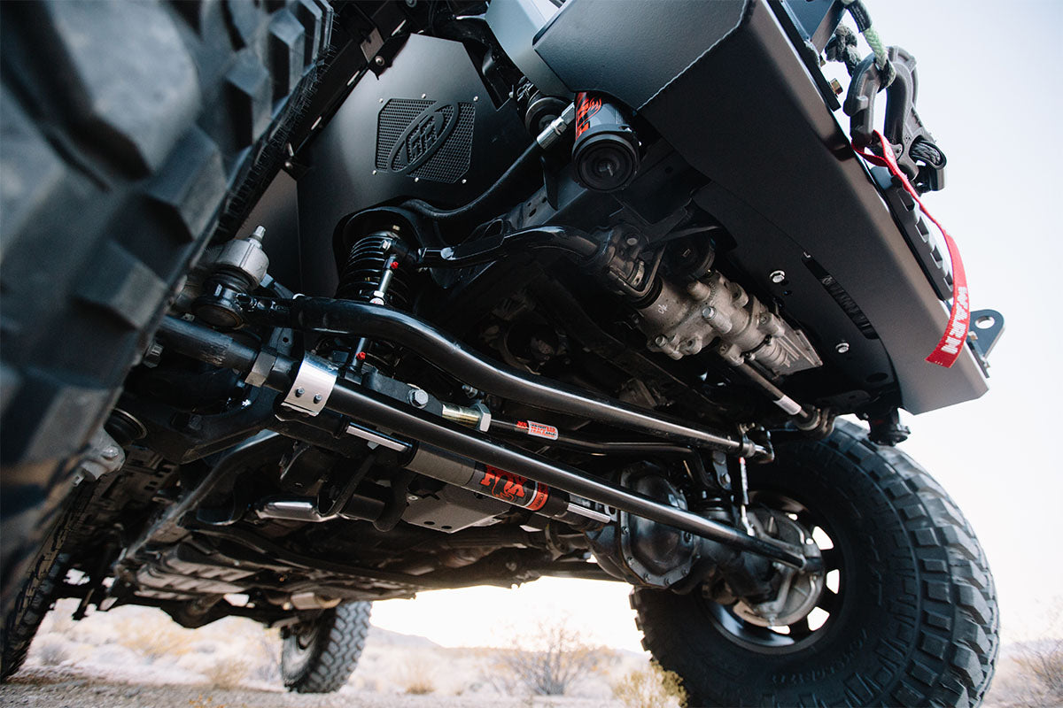 Thanks to AMW4X4, under the hood, sits a Supercharged 6.2L Hellcat paired with an 8HP75 transmission. For suspension, we worked with JKS Manufacturing and installed a 3.5-in lift along with their upper and lower J-Flex control arms.